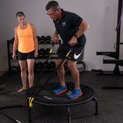 Easily adjustable and replaceable elastic bungee cords. Virtually silent bounce experience- perfect for group classes, with no squeaky springs or distractions.