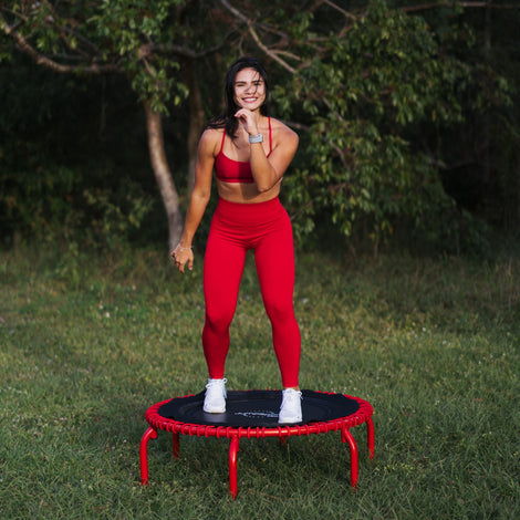 The health bounce is a simple, effective way to feel energized, move with ease, and boost your overall well-being. This gentle, controlled movement keeps your feet close to the trampoline mat, making it a low-impact option that’s kind to your joints while giving you a full-body workout.
